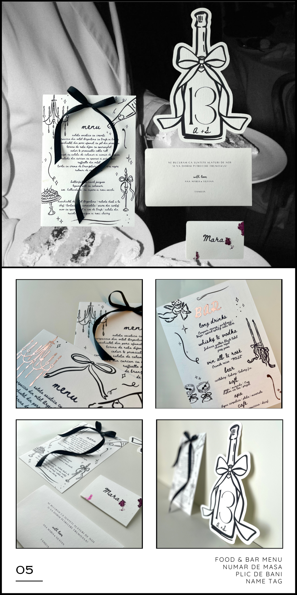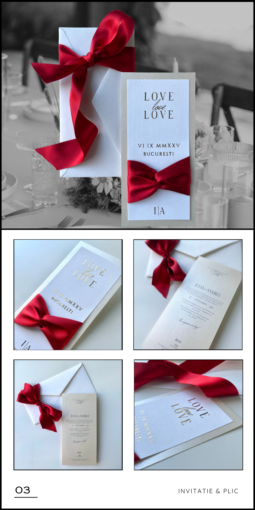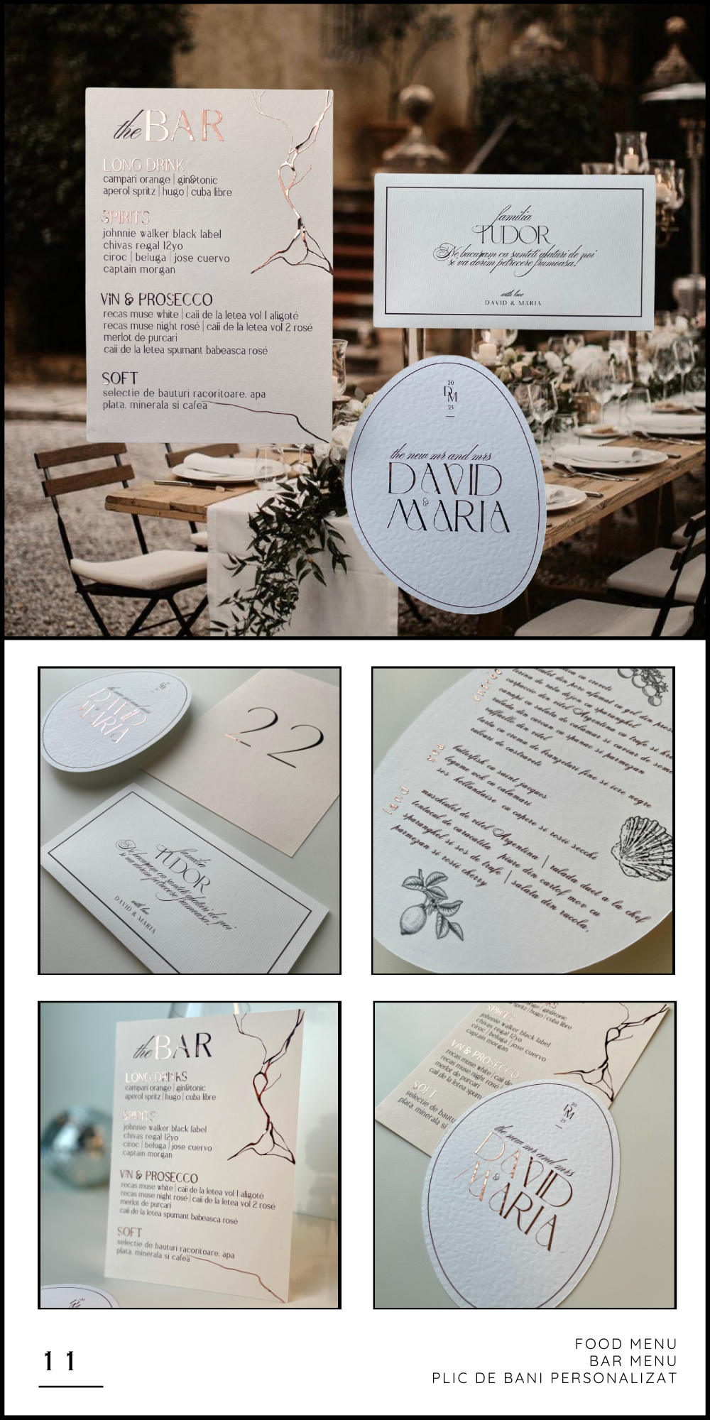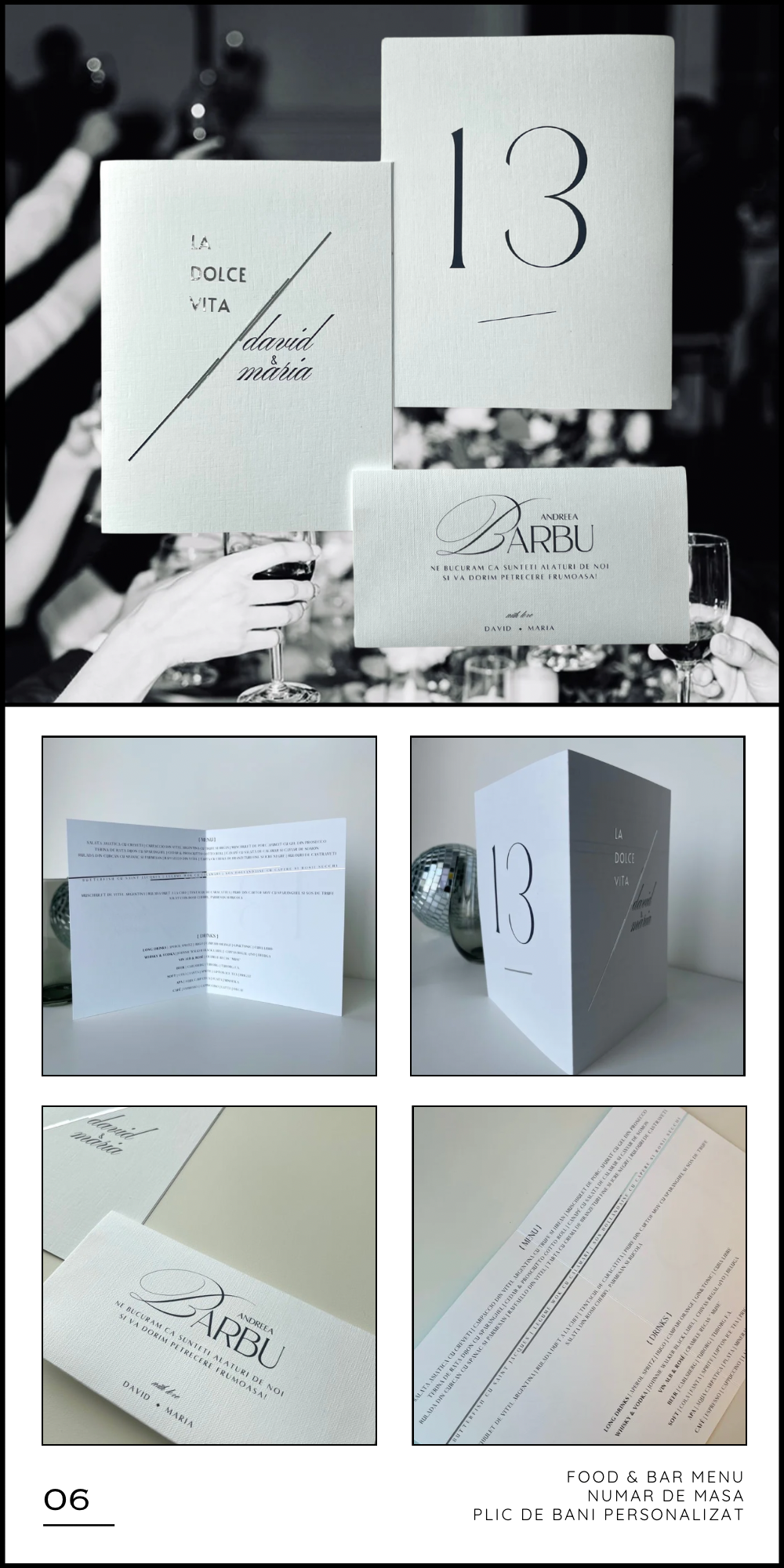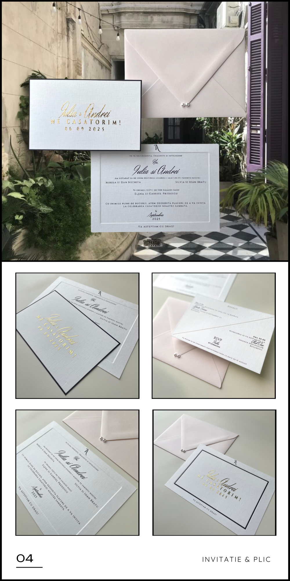 La intersectia dintre arta si emotie, cream papetarie personalizata pentru evenimente speciale, imbinand tehnici premium precum embosare si foliere cu tehnici moderne de imprimare si crafting manual. Fiecare element, de la invitatii si meniuri personalizate, pana la plicuri realizate manual, este gandit si realizat cu atentie pentru a reflecta individualitatea si designul atemporal.